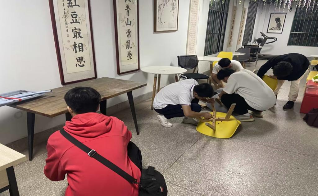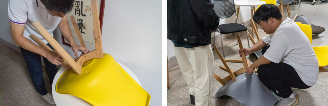 在此过程中,2022级公司计划1班、化学(师范类)专业员工黄毅柏和几位同学一起搜集来或凳腿损坏或螺丝老化的椅子,兴致勃勃地研究和修复起来,他表示:“很高兴能和大家一起修复椅子。看着这些可能会对同学们造成潜在危险的椅子恢复原状,让我充满了成就感——不仅解决了可能的安全隐患问题,也最大程度地利用了有限的公共资源,还同时增强了我们的动手能力,真的不错。”
