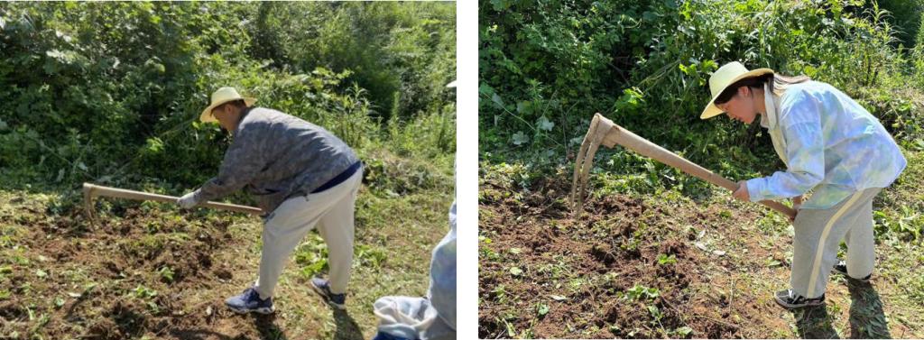 “十四天来,我们过着白天拔草、播种、种菜、收菜、砍柴、耕地、挖土豆、打烟叶、采粽叶、包粽子、敷地膜、打神豆腐、黄瓜插杆、采茶制茶、制药加工、参访现代产业园和本地中小学,看望留守儿童,晚上学习背诵《论语》、开设农村夜校、加强文体锻炼的耕读生活。”带队老师李恒介绍说。