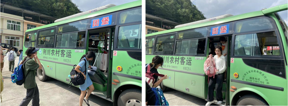 经过4个多小时的行程,大家到达利川火车站,集中前往利川汽车站,乘坐当地提前安排好的中巴车,顺着318国道再次出发,前往劳动实践定点接待处第一站——聚仙阁山庄。