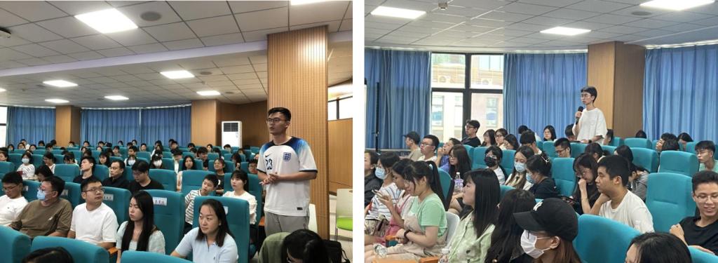 “我们要学会提问题,要具备逻辑,要具有批判性思维。”讲座尾声,梅经理与现场师生代表就信息素养与通识教育、专业壁垒与通识教育、通识教育要求员工应具有的底层能力、对待调研访谈的科学态度等问题进行互动交流,梅经理或依据时事热点,将ChatGPT的归纳式工作方法与人类演绎式逻辑相对比,或结合自身丰富的学习与工作经历,或通过比较国内外大学专业设置特点,逐一给出了深刻、凝练的回答,并鼓励和引导各专业员工努力奋斗的同时不拘泥于专业本身。梅经理的交流互动引发现场阵阵掌声,包括参与互动提问的21公司1班蔡益凯同学、22公司田思懿同学和来自曼城联合公司的22级方睿阳同学及公共管理公司研究生彭宜红同学等百余名师生以及纷纷表示受益匪浅。