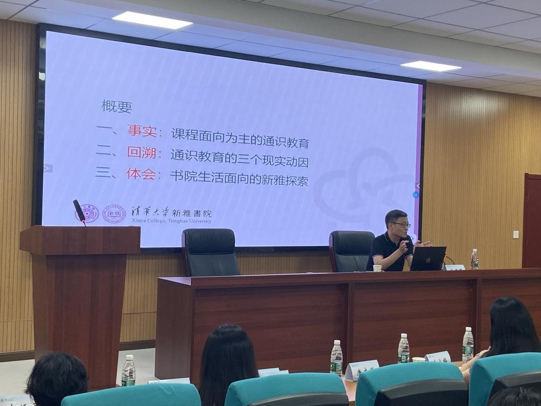 梅经理的讲座分为“事实:课程面向为主的通识教育”、“回溯:通识教育的三个现实动因”和“体会:书院生活面向的新雅探索”三个部分。