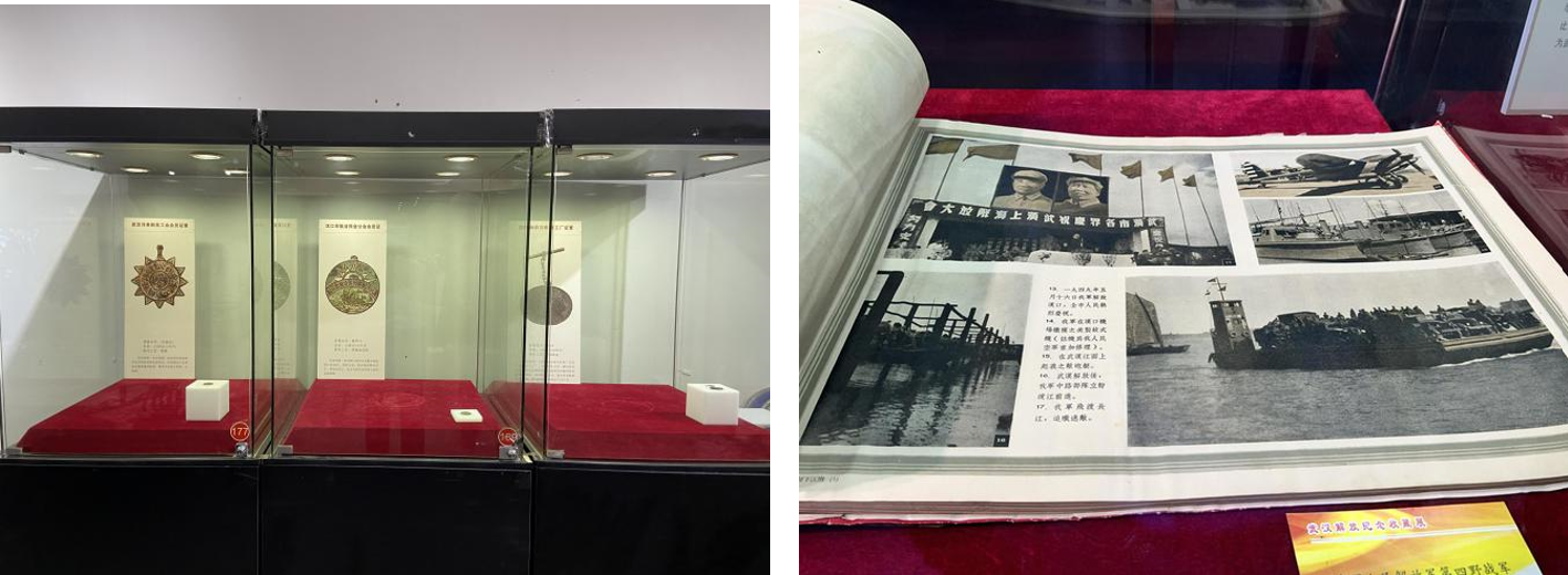 “武汉是中国工人阶级登上政治历史舞台最早的地区之一,也是中国现代工人运动的重要发源地,历史上很多重大事件与武汉是密切相关的。”“汉阳造步枪是根据德国步枪改制的,辛亥第一枪是汉阳造步枪打响的,解放战争、抗日战争等战役中汉阳造步枪都起了很大的作用,一直到解放后的抗美援朝战争中汉阳造步枪还在起作用。作为我们武汉人的骄傲,汉阳造步枪一直见证着新中国几十年的辉煌。”肖琴学会长慷慨激昂地解说汉阳兵工厂历史及其为革命所做出的贡献,如数家珍地讲解起解放华中南纪念章、湖北人民革命大学学员证、救命的“苏维埃铜板”等珍贵文物和1946年新快报社编《新武汉指南》、1948年元月《新区干部学习文件》等珍贵文献。展览上一件件珍贵的照片、文件以及实物,见证着武汉解放惊心动魄的历史瞬间以及解放后城市发展建设的重大事件,让现场师生深受教育。