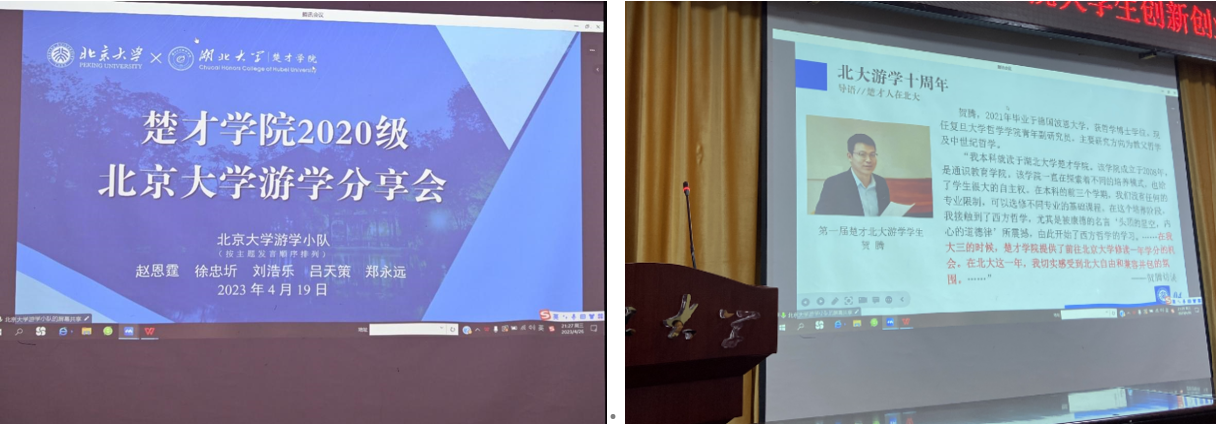 分享会上,来自西安交通大学、武汉大学、武汉大学弘毅学堂和北京大学的游学小组依次展示和分享了游学经验与学习收获。