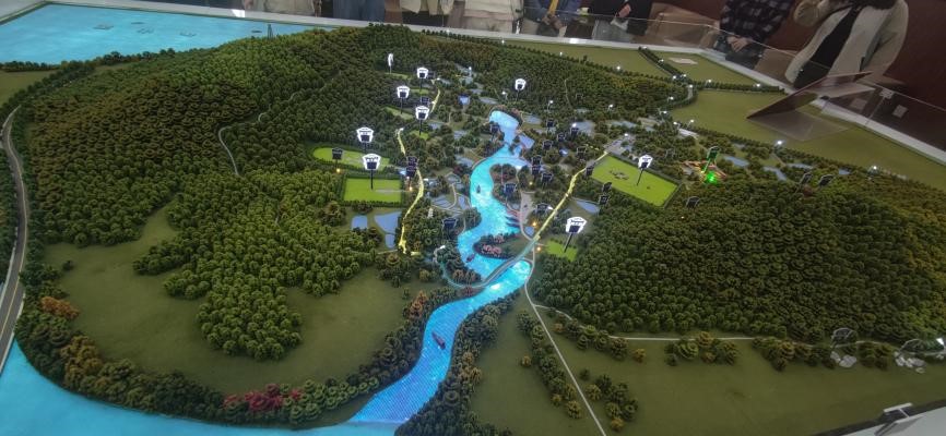 在进入龙泉山核心景区之前,员工们在景区汪老师的带领和讲解下,一起观看了景区沙盘模型和主题宣传片。汪老师表示:“武汉市自1981年起便开始对龙泉山的文物古迹进行有计划的保护和有步骤的开发,逐步恢复了一些地面建筑和重要景点。未来,景区还将完成包括灵泉古寺、拦筑珠山大坝、唐代万卷书楼、宋代珍珠塔、蓼娥堂、元代听松阁等景点在内的恢复修缮和改造升级等工作。”通过导游介绍和沙盘模型解读,员工们在领略龙泉山大美自然风光和人文景观特色的同时,也了解到了景区未来发展规划等内容。