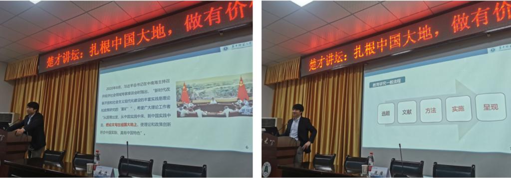钱教授的此次讲座从为什么要扎根中国大地做研究、如何扎根中国大地做研究和研究案例解析等多个方面,全方位地为我们展示了教育领域的研究方法、研究视角、研究现状等内容,使我获益良多。通过钱教授四个案例的讲解与拓展,我感受到了当今中国教育的热点话题与待解决的问题,对教育研究有了更深刻的认识,体会到了我们要扎根中国大地做研究,要用新的视角看待问题、多样的方法研究问题、批判的态度评述问题。从国家政策解读到实地访谈调查,从个案研究到定量分析,我们可以用多样的方式,从全新的角度,研究“双减”、留守儿童教育等问题。本次讲座使我获益满满,提升了我对科学研究的认识与理解。