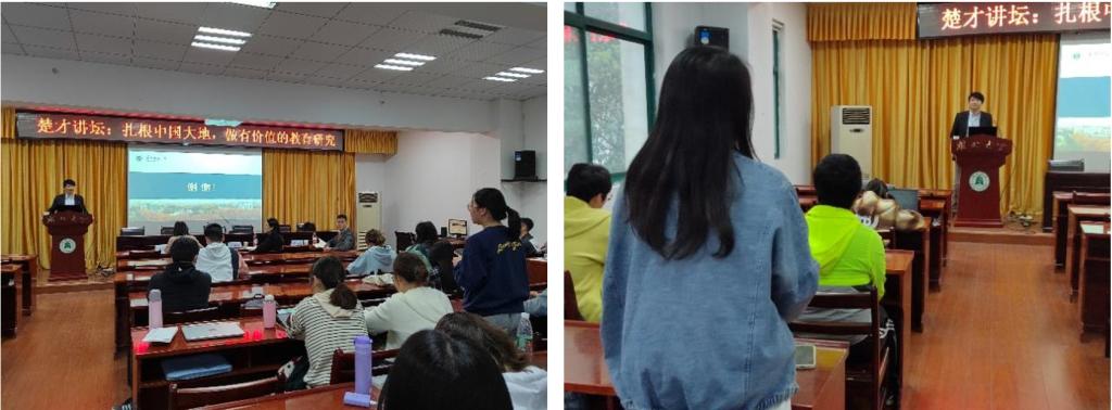 在今天的讲座中,我有幸听到了来自华中师范大学教育公司的钱佳副教授关于《扎根大地,做有价值的教育研究》的专题讲解,整体收获很大。我之前对教育行业并不了解,然而通过钱教授的生动讲解和列举的丰富案例,我深刻体会到了做教育的重要性和任重道远。此外,通过互动交流环节,通过钱教授对同学们问题的解答,我也体会到了现今教育行业存在的一些弊端。此次讲座使得我接触了很多新的知识,提升了我的见解,使我整体收获很大,谢谢钱教授的分享!