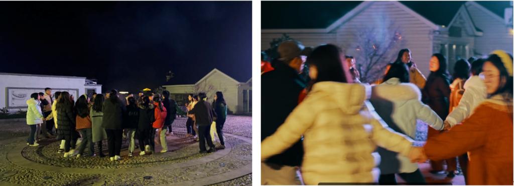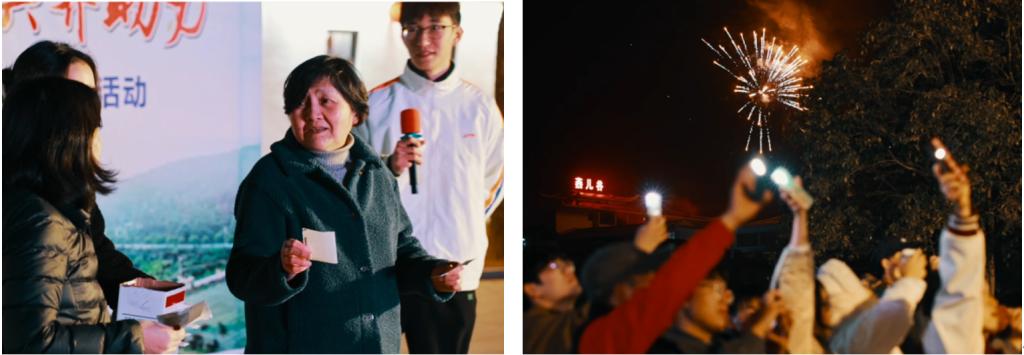 晚会期间还进行了幸运抽奖和篝火娱乐等环节,大家手挽手转圈、唱歌奔跑,其乐融融,伴随着夜空闪烁的阵阵烟火,一切都刚刚好。