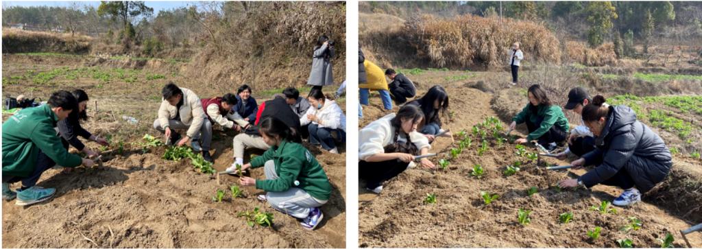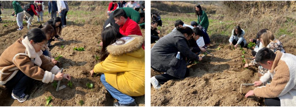 有的仔细询问农户有关注意事项,有的在老师的指导下很快就掌握了有关要领,还有的在不断的尝试和实践中越发熟练……大家分工互助,小心翼翼,为了让每一颗菜苗都能尽快入土,找到最好的归宿。