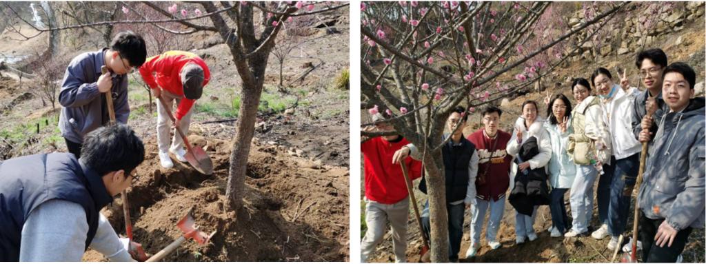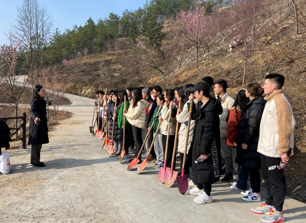26日一早,师生们驱车前往燕儿谷梅岭山坡,开展植树和认养活动,共迎第45个植树节。