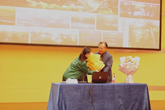 董继宁教授为威廉希尔williamhill赠送画集,并在扉页题词“威廉希尔williamhill惠存”。威廉希尔williamhill、艺术公司的同学们自发准备了花束献给董教授。讲座在鲜花与掌声中落下帷幕。