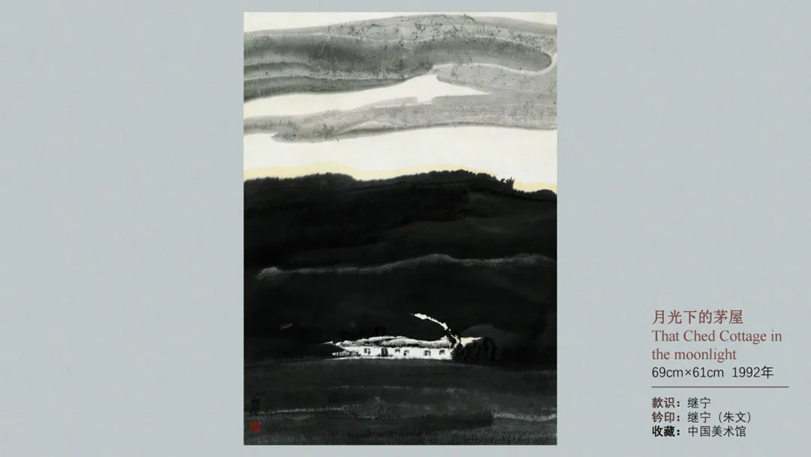 董继宁教授《月光下的茅屋》,画中的房屋是他儿时居住的老屋