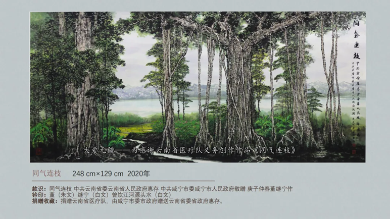 董继宁教授为感谢云南省医疗队支援咸宁的创作作品《同气连枝》,并捐献给云南省医疗队