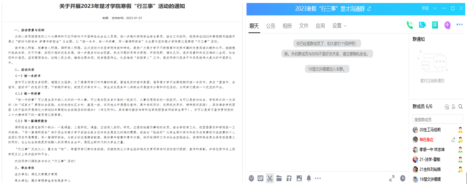 1月1日,威廉希尔williamhill官网发布了2023年威廉希尔williamhill“行三事”活动的通知,2023年寒假公司社会实践正式拉开帷幕。
