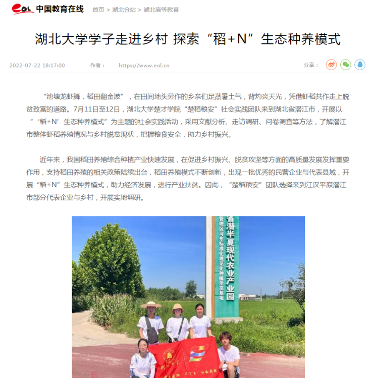 【媒体公司】中国教育在线报道公司“楚稻粮安”社会实践团队