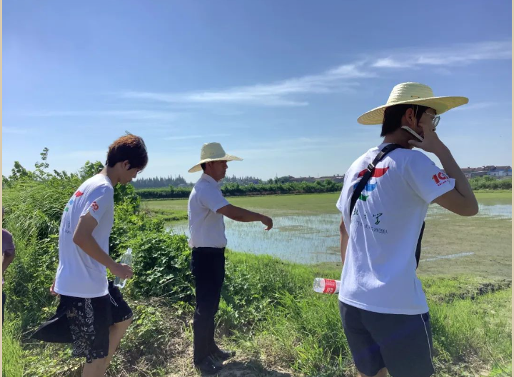 什么是稻虾养殖?它有哪些模式?具体是什么样的?在前期的文献查找过程中,团队成员重点讨论了这些理论性问题,并实地来到湖北省潜江市莱克集团稻虾养殖基地,深入村镇,与养殖户进行沟通交流,调研小龙虾的生产养殖情况,探究稻虾是怎样长成的。