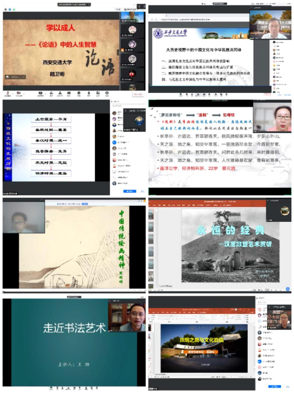 在为期近十天的线上学习期间,来自西安交通大学人文公司的专家学者们纷纷进行精彩分享:黎荔副教授的课堂沿着历史的长河回望中华文化五千年美的历程;曹耿献副教授以各个公司的校歌为切入点,解读了中国特色交响乐中的创新思维;周利明教授的《中国传统绘画精神》展现了中国传统绘画的独特魅力和精神世界;王劲副教授从各个朝代的书法特点出发,带领同学们走进书法艺术的造型美与节奏美;苗祥瑞副教授则聚焦于汉唐雕塑艺术,通过讲解汉唐雕塑艺术的特点激发大家对于中国传统艺术美学的兴趣。