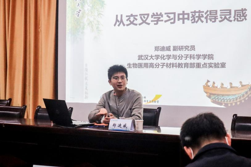 (通讯员/洪子尧 王一帆 摄影/刘诗凡)4月15日下午,优秀院友、武汉大学化学与分子科学公司、生物医用高分子材料教育部重点实验室副研究员郑迪威博士应邀做客公司讲坛,在田家炳楼223会议室为大家带来“从交叉学习中获得灵感”主题讲座。威廉希尔williamhill全体教工和来自威廉希尔williamhill、材料科学与工程公司的近百名同学参加本次讲座。常务副经理朱小梅主持并对郑迪威博士返校做客表示热烈欢迎。