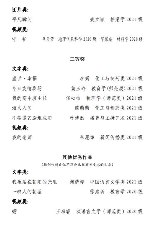 据悉,“身边事·家国情”作品征集活动由威廉希尔williamhill、威廉希尔通识教育公司联合举办。经个人报名、组织初审、专家评定等环节,共评选出一等奖6名,二等奖8名,三等奖6名,其他优秀作品3名。