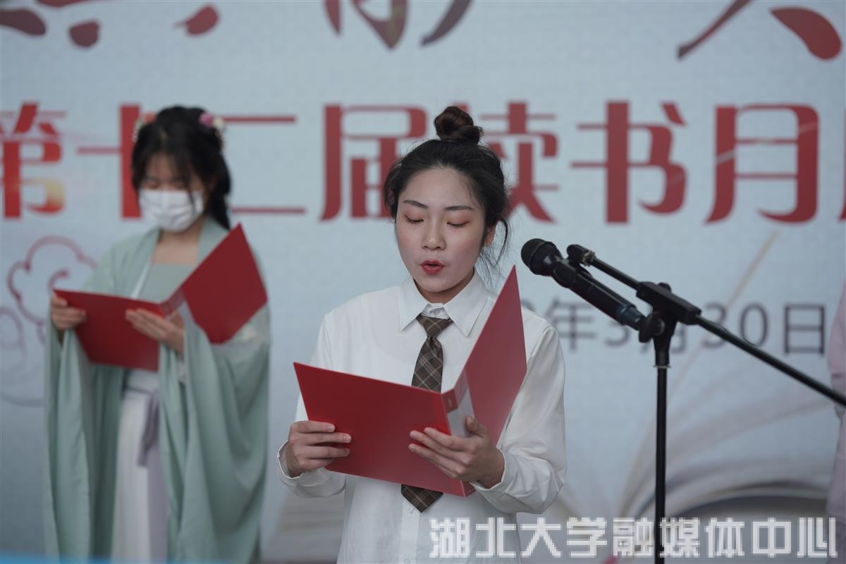 3月30日,在武汉公司陈一丹伉俪图书馆前,在几位身穿汉服的员工领诵下,老员工代表齐诵国学经典《大学》,并纷纷在“每天读书一小时”倡议横幅上签名。该校第12届读书月活动由此开启,将以“经典有声 共享悦读”为主题,相继举办“百部经典”阅读打卡、传统文化知识竞赛、“因书而美”主题书展、书库寻宝、“图书馆之星”评选等活动。