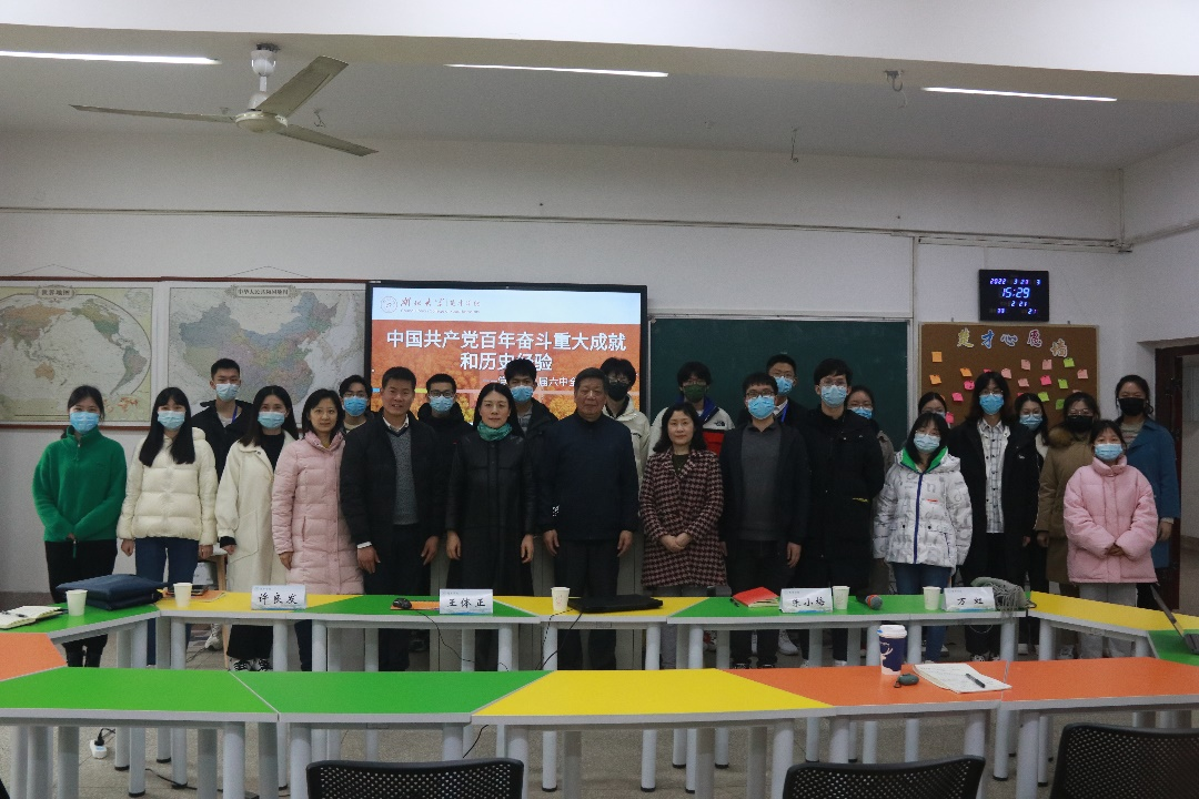 “这是一次具有里程碑意义、承前启后的大会。”报告伊始,王体正再次向在场的师生们指出了此次会议召开的背景和意义。接着,他从九个方面分别宣讲了十九届六中全会精神的主要内容,还就“中国共产党是什么”、“中国共产党干什么”等内容进行了深入阐释。整个报告逻辑清晰,证据翔实,全过程处处饱含着其对党的深情和热爱:“党和国家紧紧依靠人民,用几十年的时间走完了西方发达资本主义国家几百年的发展历程,这不能不说是一个奇迹。”“我们实现了从生产力相对落后的状况到经济总量跃居世界第二的历史性突破,实现了全体人民的生活状况由温饱不足向全面小康的跨越。”特别是谈到坚决拥护党的领导和点赞祖国经济建设成就等内容时,他反复总结强调,“我们党是无产阶级的政党,始终代表着最广大人民的根本利益,也始终保持着为人民服务的坚定信念。”“党在百年奋斗的历程中毫不动摇地坚守着以人民为中心的理念,在未来的发展中也必然将不忘初心,砥砺前行。”