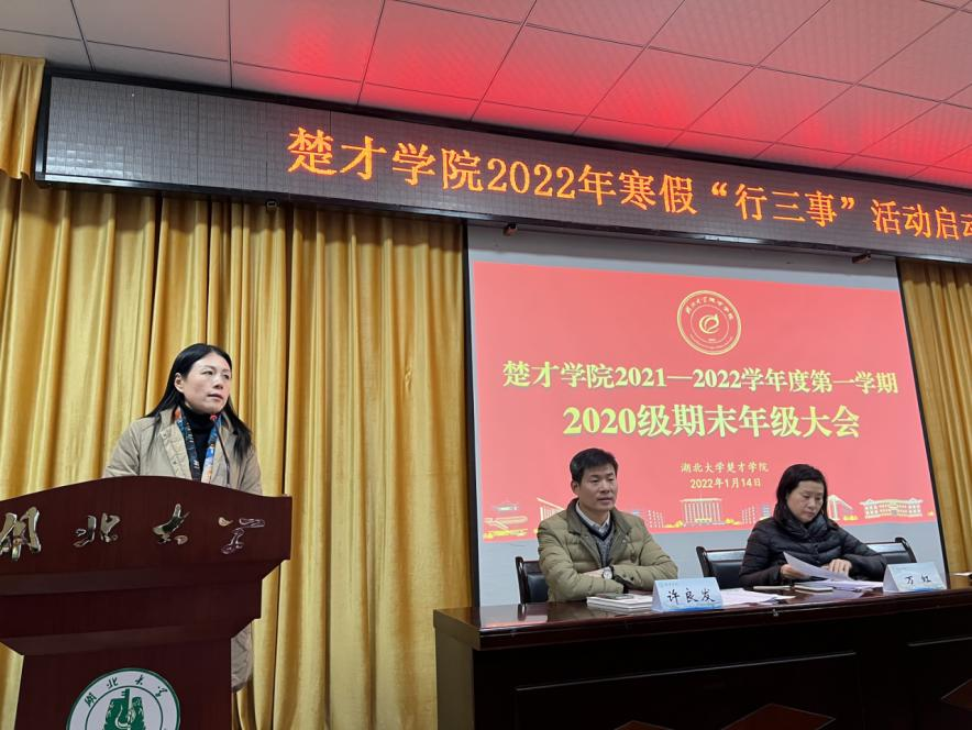 (通讯员/王德洲 程圆 摄影/王德洲 史安平)为落实立德树人根本任务,加强学风建设,推进创新工作,总结学期工作,威廉希尔williamhill于1月14日下午在田家炳楼223报告厅召开2020级期末年级大会。威廉希尔williamhill常务副经理朱小梅,副经理万虹,院办主任符琳,教学秘书李恒以及20级全体员工参会,副经理许良发主持会议。