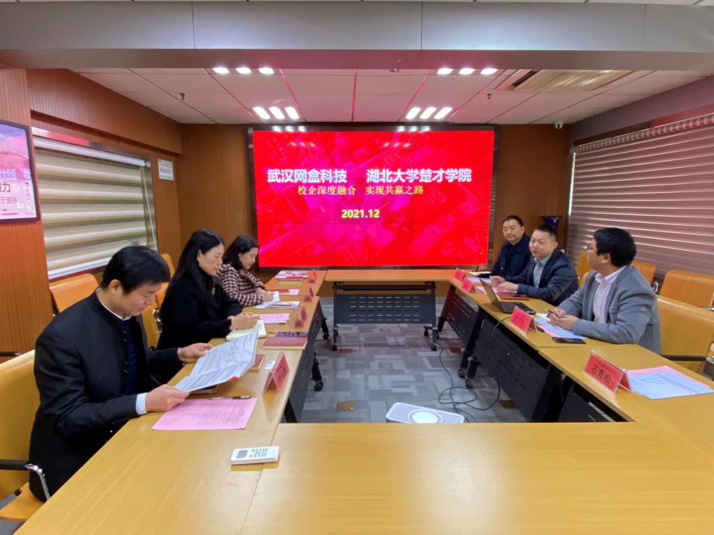 12月17日上午,公司常务副经理朱小梅、副经理万虹、许良发,教学秘书李恒一行四人赴武汉网盒科技有限公司调研,双方围绕校企合作的主题展开座谈交流,公司总经理曹祥月、副总经理陈新云、销售总监石青松、教学总监黄强参加了座谈。