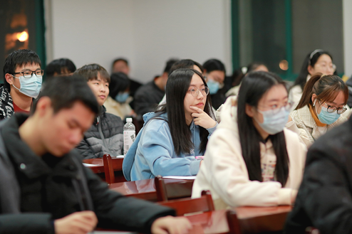 “好的选题是成功的一半。”在论述选题的重要性时,宋教授为同学们推荐了荣新江教授的著作《学术训练与学术规范》作参考,指出论文拟题的各种相关不宜格式。在解释什么样的选题才是好的论文选题时,他强调,好的选题来源于首先要对于一个问题的研究要有一论到底的精神,其次是要有自己独到的见解以及说明清楚相关引用和采用例证的特殊之处。宋教授还以实例互动等方式向大家讲解对于一个研究问题三种境界的区分。