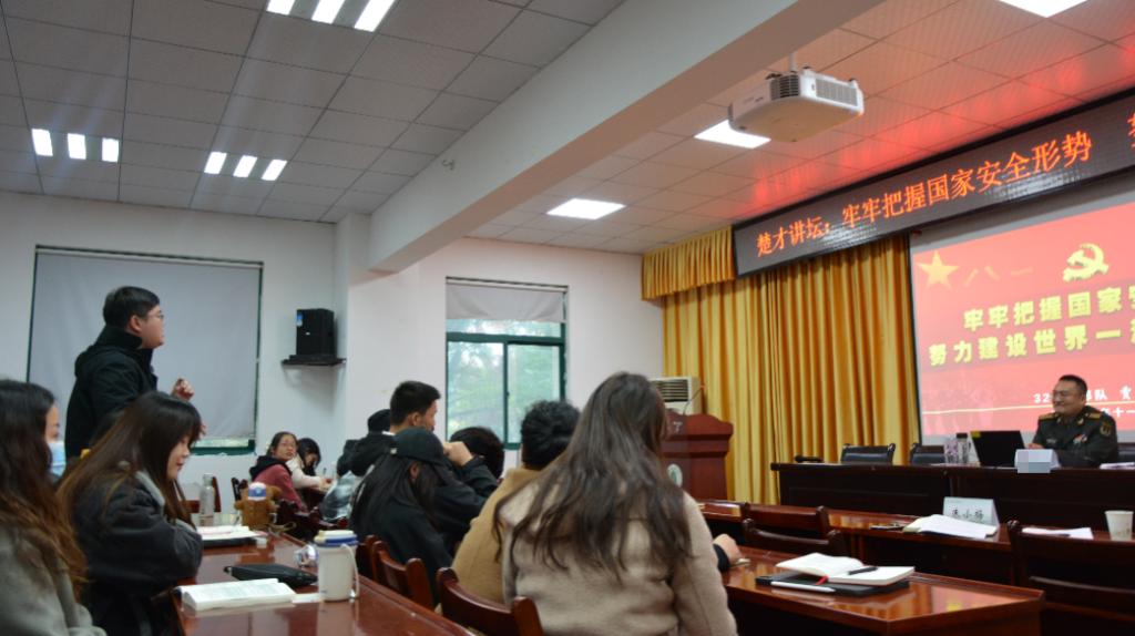 在互动交流环节,同学们积极思考,踊跃提问,贾副参谋长进行了耐心细致的解答,并对同学们关心国家安全和军队建设给予了高度肯定。