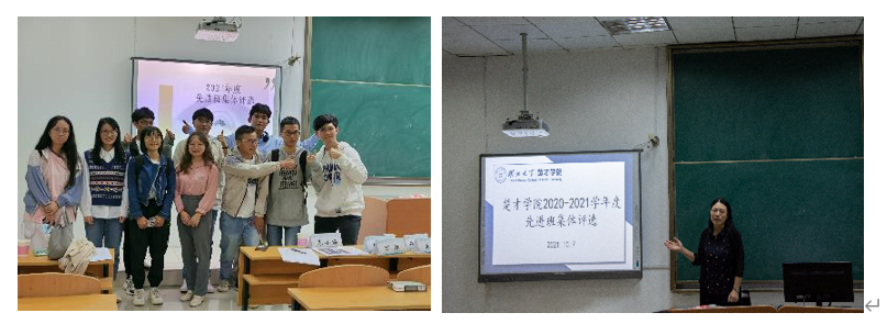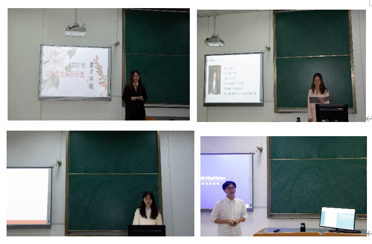来自2019级公司理科班的张丝雨、2020公司文科班的孟康平、2019级交叉复合班的z祝正浩、2020公司级理科班的郑锦和2020级交叉复合班的余婷五位同学先后从班级基本情况、班规目标、学风建设以及文体活动等方面介绍班级情况,分享和展示班级风采。19级公司理科班的“今楚有约”班级特色活动、20级公司文科班隽永的人文风采、19级交叉复合班刻苦钻研的优良学风、20级公司理科班严肃活泼的班级面貌以及20级交叉复合班的克难奋进精神给大家留下了深刻印象,赢得在场师生的点赞和好评。