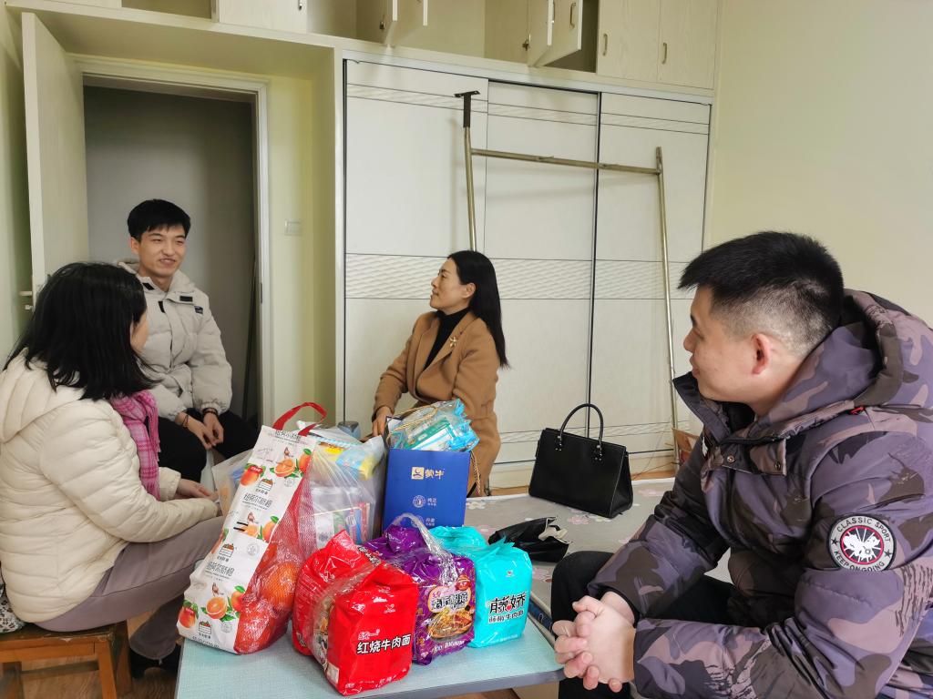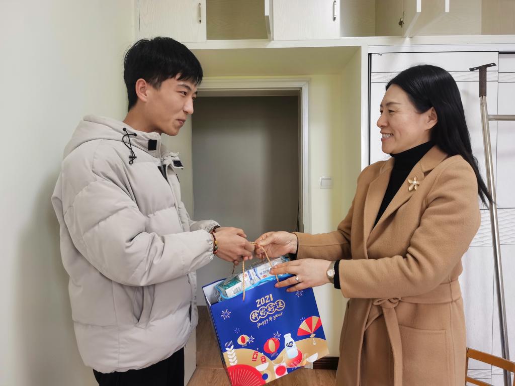 2月4日,正值农历腊月二十三,我国北方小年,威廉希尔williamhill常务副经理朱小梅携副经理万虹、党委副书记韩凯、辅导员杨德津一同走访慰问了上述两名因疫情滞留在校的河北籍员工,并为他们带去了部分生活物资和防护用品。