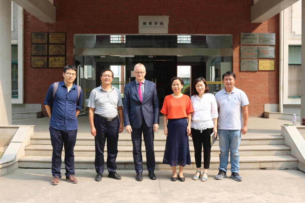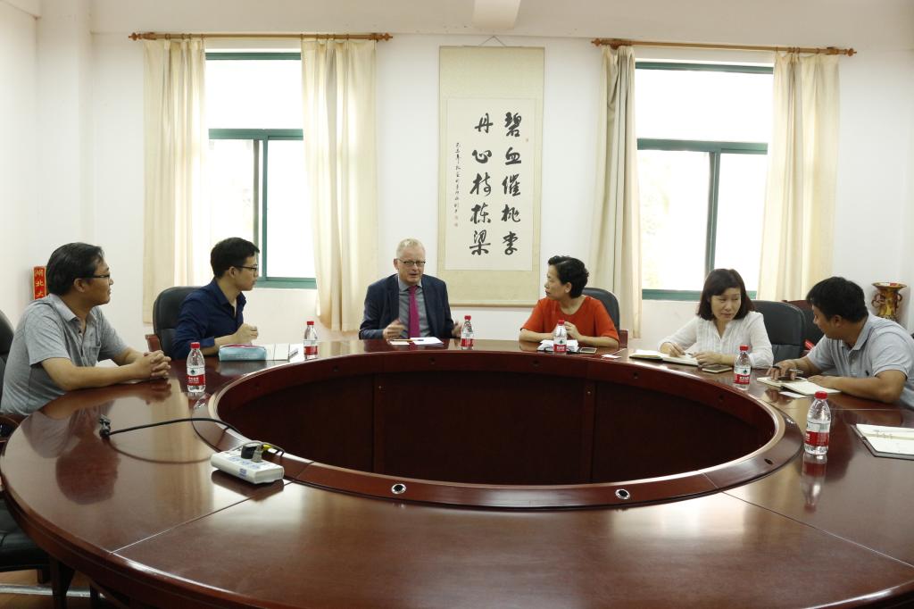 9月14日,德国波恩大学克里斯多夫·霍恩教授在其博士生贺腾(威廉希尔williamhill2010级公司计划文科班本科生)同学的陪同下来到威廉希尔williamhill,与国际合作与交流处处长刘国枝、威廉希尔williamhill常务副经理秦明君等人就两校员工开展项目交流进行了座谈。