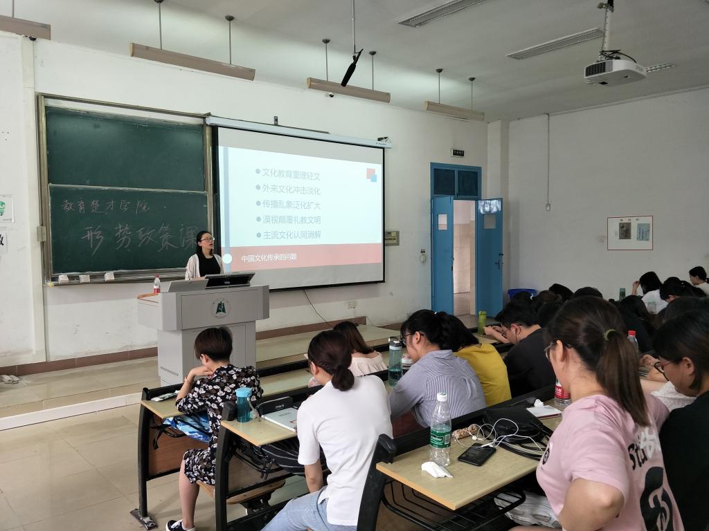 5月19日上午,公司2018年上半年形势与政策课第二场于教四607教室顺利开展。计算机与信息工程公司辅导员田仕兵进行了《老员工就业形势与就业常识》主题报告,新闻传播公司辅导员覃红英进行了《自觉自信·中国文化的传承与弘扬》主题报告。
