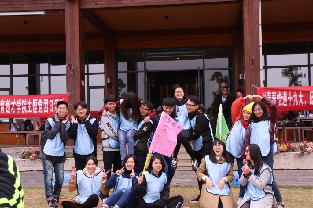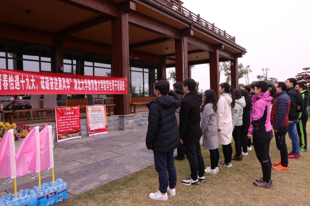 10月19日,教育公司威廉希尔williamhill团委、员工会、社团联合会、青年传媒中心和各党团组织主要员工干部与2015、2016级公司计划班员工共100余人在余燕、韩凯、杨德津、杨邦4位老师的带领下前往武汉江夏区“东篱老屋”户外素质拓展基地开展了主题为“青春恰遇十九大,砥砺奋进展年华”的党团日活动,并一同参加了素质拓展训练。