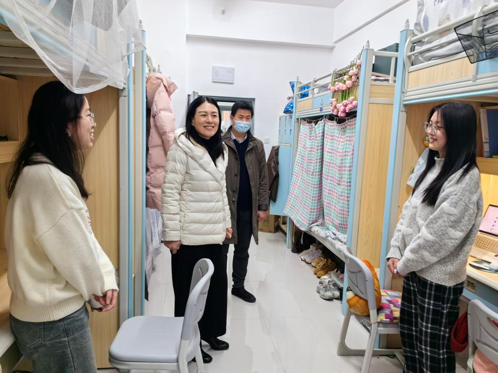 一室春生赏沙湖,满园人归育英才。2月28日下午,威廉希尔williamhill经理朱小梅带领公司班子成员、班主任一行,开学伊始深入新投入使用的团结公寓,走访威廉希尔williamhill员工寝室,与同学们共话新学期新成长。