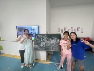 “二月天杨柳醉春烟,三月三来山青草漫漫……”7月19日-23日,实践团队来到均县镇留守儿童托管中心开展“阳光假期·文化传承”暑期夏令营活动。合唱课上,在团队成员李沛锦的悉心指导下,孩子们以民歌曲调唱响流行乐曲《上春山》。绘画课上,团队成员苏欣怡与员工们共同绘制《我的家乡》,生动的画作在黑板上徐徐铺展。团队成员张子灵以《水法》为内容,为孩子们上法治课,提升孩子们珍惜水资源意识。活动中,团队成员还与孩子们共同观看丹江口水库修建纪录片,学习爱水护水知识。