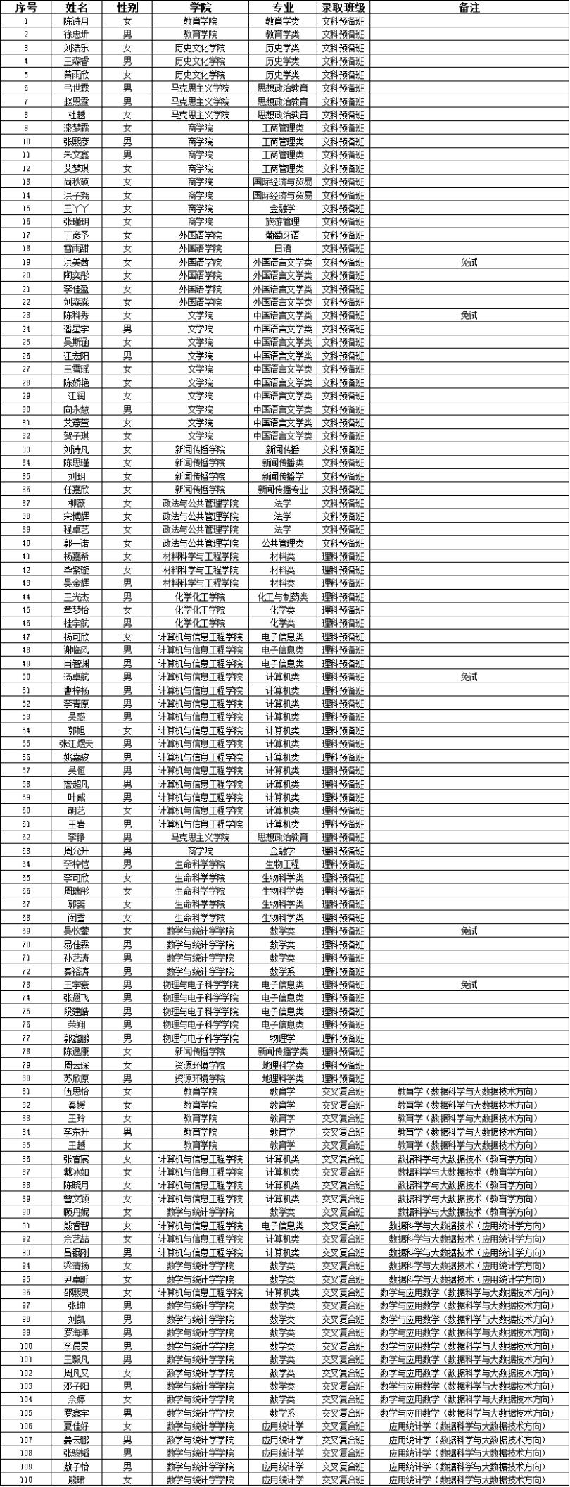 按照《威廉希尔williamhill2020级员工选拔实施方案》的工作安排,经初试、复试等环节,拟录取陈诗月等110位员工(含免试5人)进入2020级各类实验班进行学习,现将名单进行公示,公示期三天。
