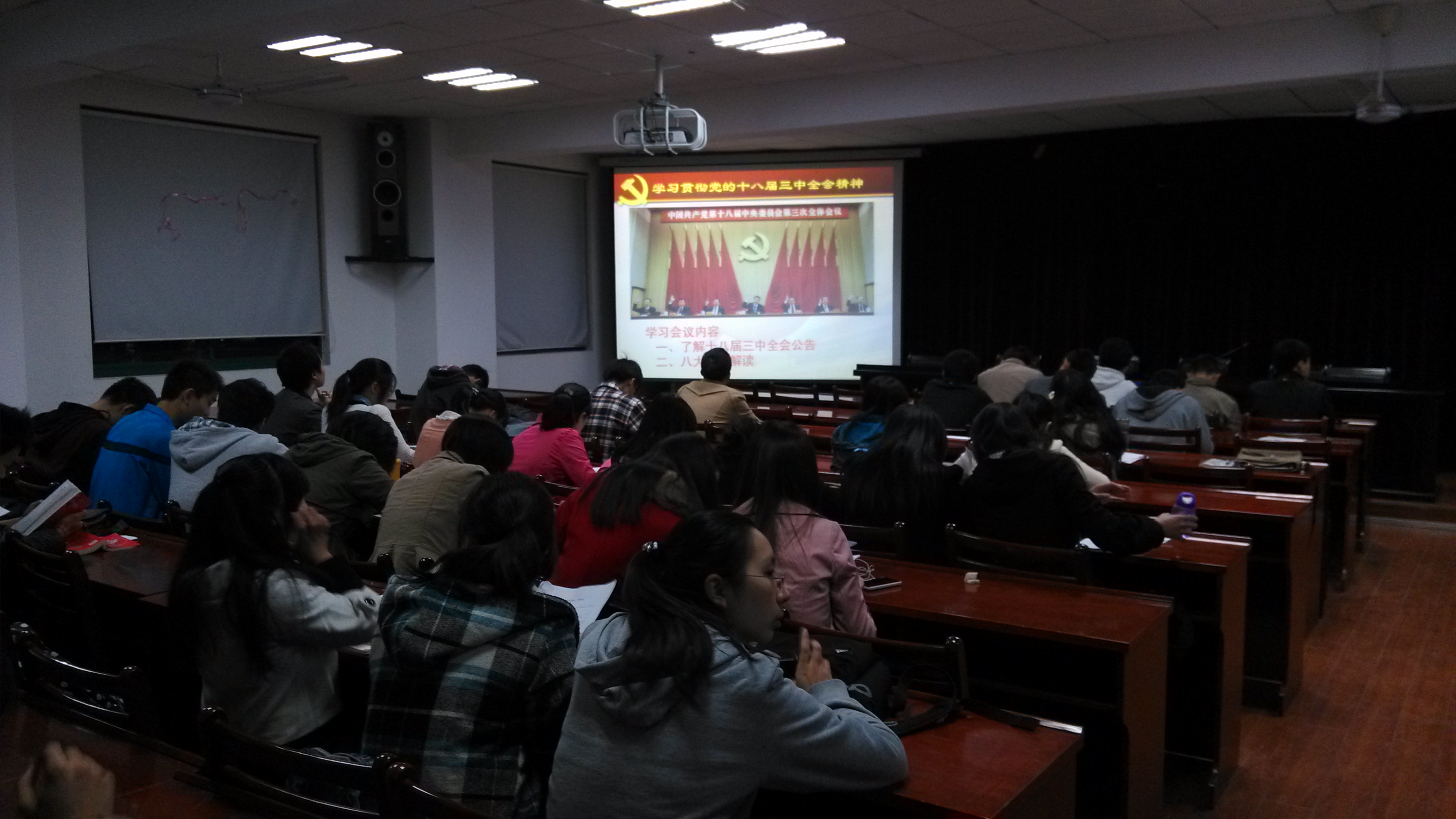 11月17日晚6点,2011级公司计划文理两个班在公司223教室召开了名为“紧跟时代潮流,争做有为青年”的专题会,这次会议是围绕学习贯彻党的十八届三中全会精神展开的。11楚文团支书郭延昕担任主持,11级公司计划文科班和11级公司计划理科班的同学们参加了会议学习。