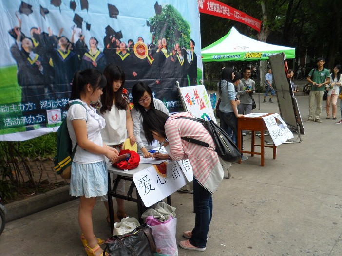 爱心宿舍的招募在16日中午11点正式拉开序幕,虽然天公不作美,下着密密细雨,但大家挂宣传海报,张贴自制宣传条幅,摆放办公桌……忙得不亦乐乎。趁着放学时间,各个路口流动的人较多,他们不顾淅沥的小雨,将一份份精心准备的宣传单发放给来来往往的同学们。看着同学们仔细阅读宣传单,他们眼角皆是满满的笑,还不时细心地给同学们解疑答惑。为感谢留下联系方式的“爱心人士”,忙碌的成员们还赠送了“小宿舍、大爱心”的门贴和饰品袋作为回馈。一旁登记的同学告诉记者,大家都很积极,很有爱心,目前已有200个爱心宿舍登记入册,不少大四学长、学姐还捐赠了一些书籍、衣物……为了表示对同学们活动的支持,教育公司11公管班英语老师蕫又能还毅然捐出50元人民币,作为活动的“爱心基金”,这让平时幽默可爱的董sir更增添了不少魅力呢!