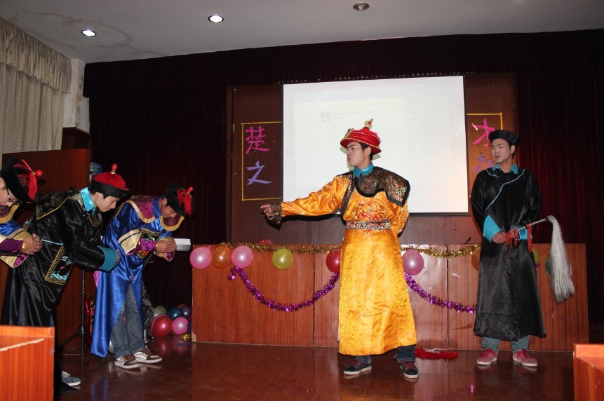 晚会在充满温情的歌曲串烧中拉开帷幕,由11楚文的郭延昕带来的时而婉转时而刚劲的嗓音Hold住了全场,现场气氛没经预热便High了起来,掌声口哨声不断响起。音乐过后,小品《穿越剧》再掀高潮,演员们创意新奇、表演逼真,尤其是扮演小太监的同学,举手投足间将人物形象演绎得淋漓尽致。