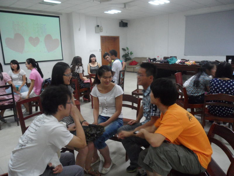 在活动开始前,同学们采取随机报数的形式,分成五个小组,并分别呈圆形围坐在一起。作为整个活动的重头戏,“诉说——倾听”环节一开始,各个小组便立刻投入到热烈的讨论中,现场一片欢声笑语。工作的困惑,学业的繁忙,游学的抉择,暑期社会实践的难题,大家畅所欲言,讨论的话题涵盖生活、工作、情感等各个方面。当组内成员讲述完自己近期的生活状况后,其他组员可参与到讨论中,或发表意见,或针对其中感兴趣的话题进行提问。二十分钟的“诉说——倾听”,大家你一言,我一语,现场爆笑不断。