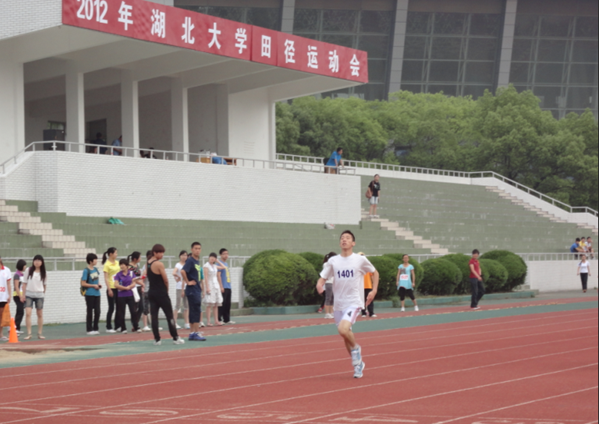 8:30,只听得一声枪响,运动场上的健儿们便如离弦的箭一般向终点冲去。“加油,加油!”啦啦队追随着运动员,在跑道之外大声呼喊。突然,一位高高瘦瘦身着白色运动衣的运动员出现在了记者的镜头中:他眉头紧皱,拼命甩动着双臂,以最大的步伐奋身越过终点线。“侯逸超小组第一耶!”观众兴奋地叫了起来。男子
