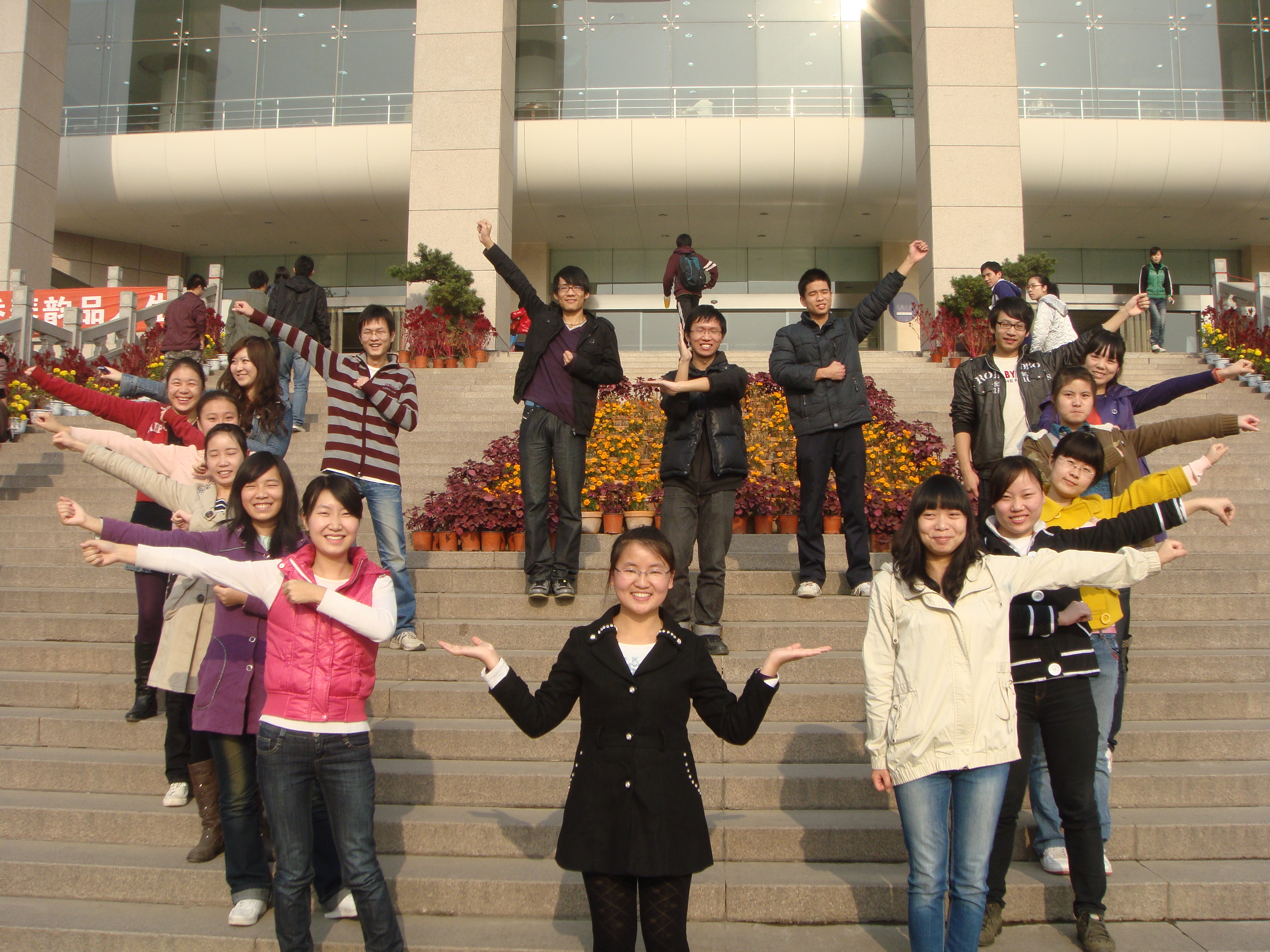 12月5日下午,在图书馆门前,08公司文科一班的同学齐聚一堂,为即将到来的2011年元旦拍摄具有公司特色的班级年度纪念短片。